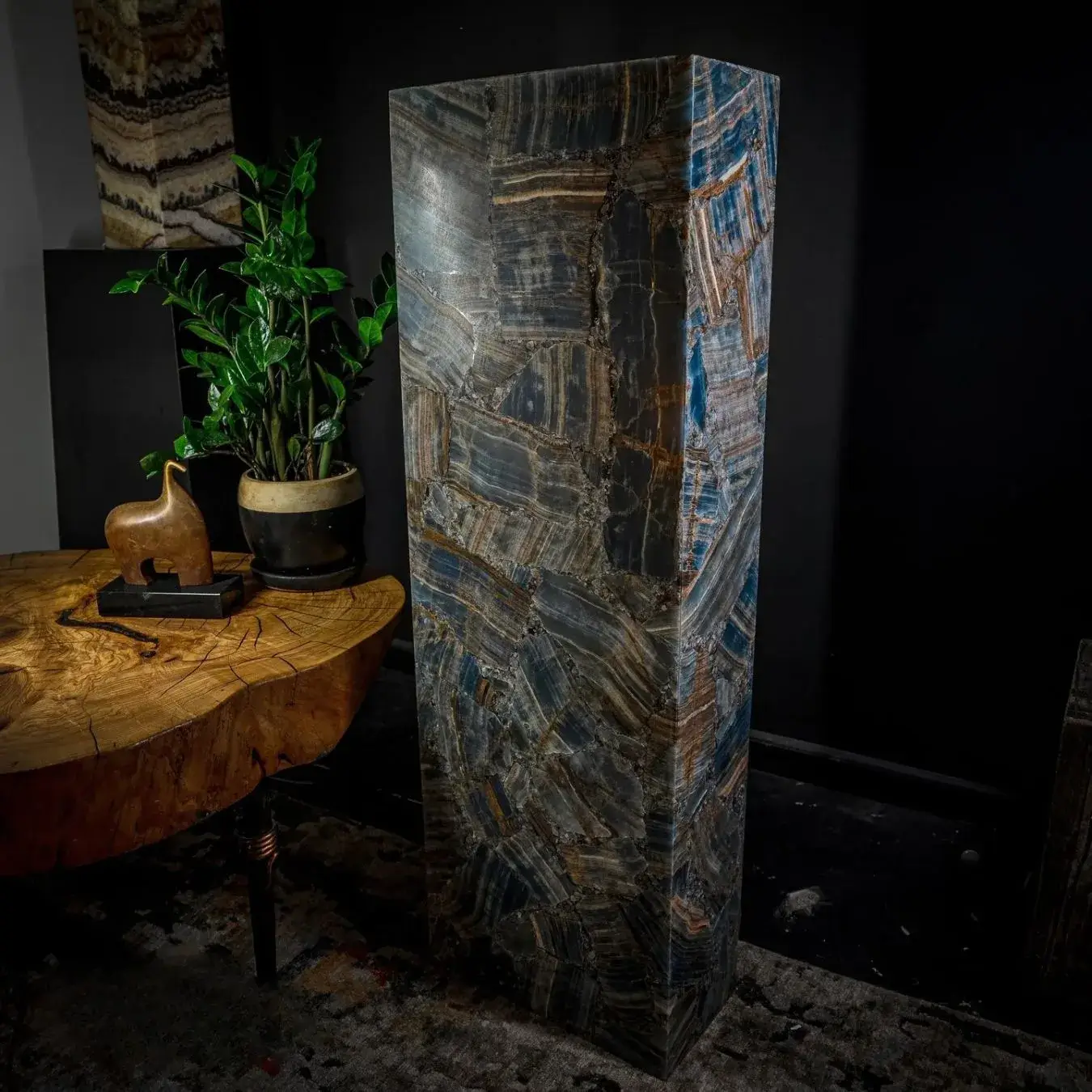 Introducing our Argentina Blue Onyx Tower from the exclusive collection of handmade art pieces. Crafted from the finest Argentina Blue Onyx, sourced from our trusted quarry of 45 years, this tower is a stunning fusion of nature’s elegance and artisanal craftsmanship.