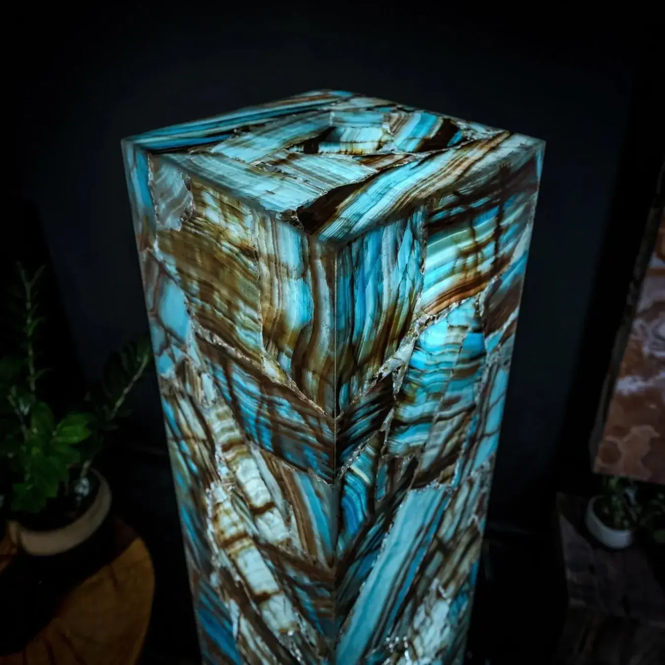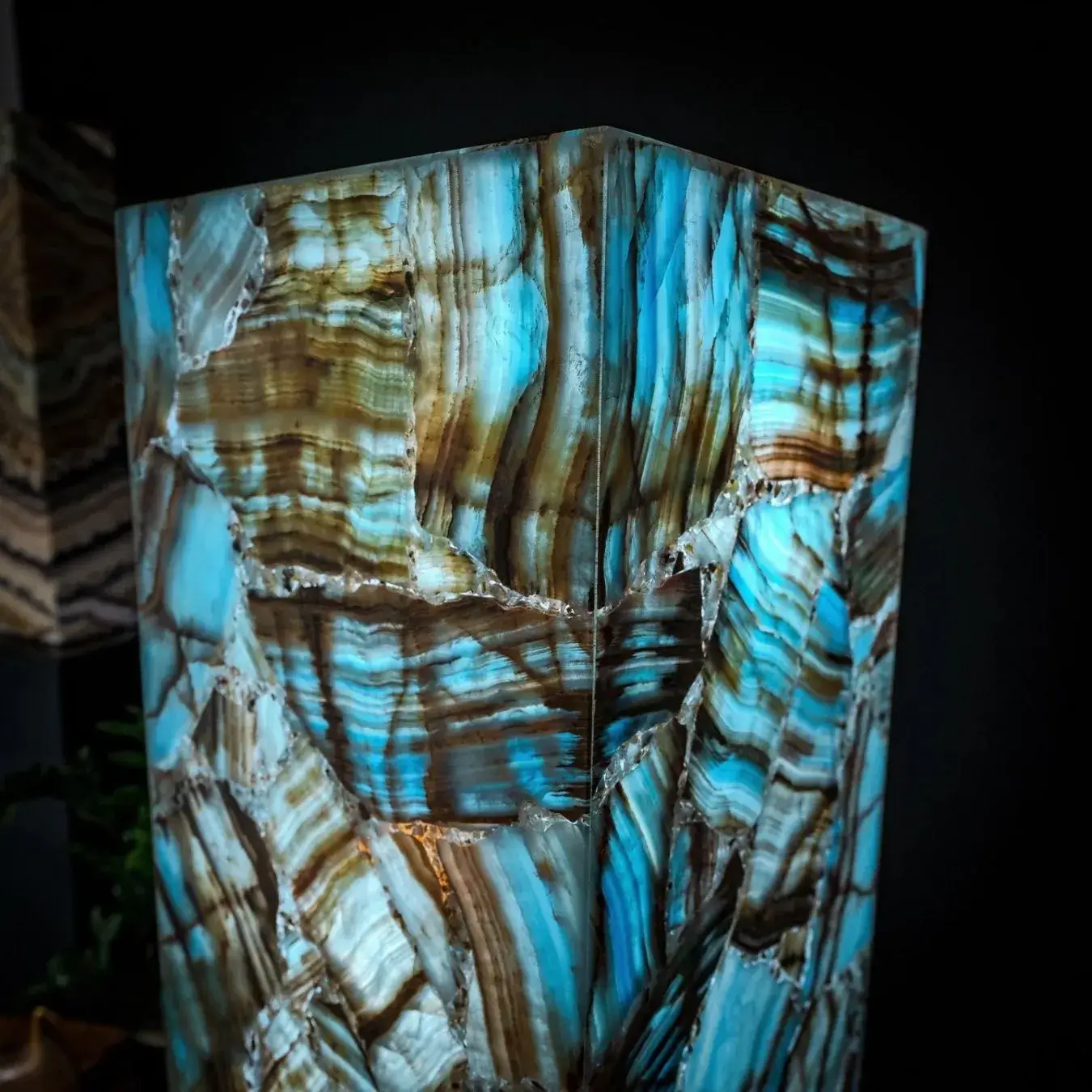 Introducing our Argentina Blue Onyx Tower exclusive collection of handmade art pieces. Crafted from the finest Argentina Blue Onyx, sourced from our trusted quarry of 45 years, this tower is a stunning fusion of nature’s elegance and artisanal craftsmanship.