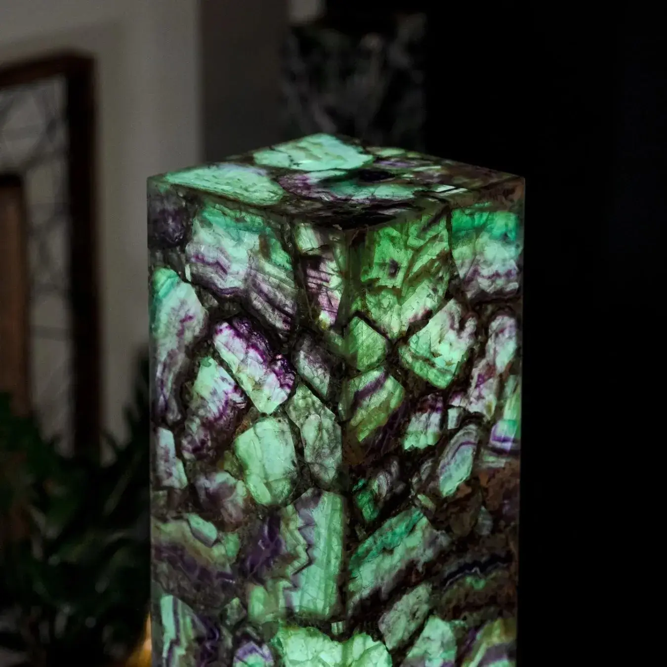 What makes our Fluorite pieces so special is that each one is unique. Each lamp is carefully carved by hand to highlight the natural beauty of the rock. This means every piece is a one-of-a-kind work of art, lovingly made while embracing nature’s imperfections.