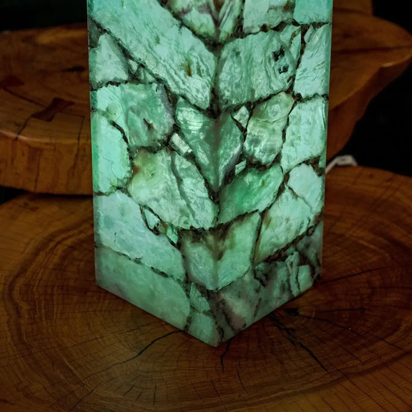 Our unique lighting decor is inspired by the beauty and rarity of these stones. Each lamp gives off a soothing glow that dances around your room, creating a calming yet enchanting atmosphere. Watch as the green, blue, and purple hues play with the light and blend into your home’s vibe.