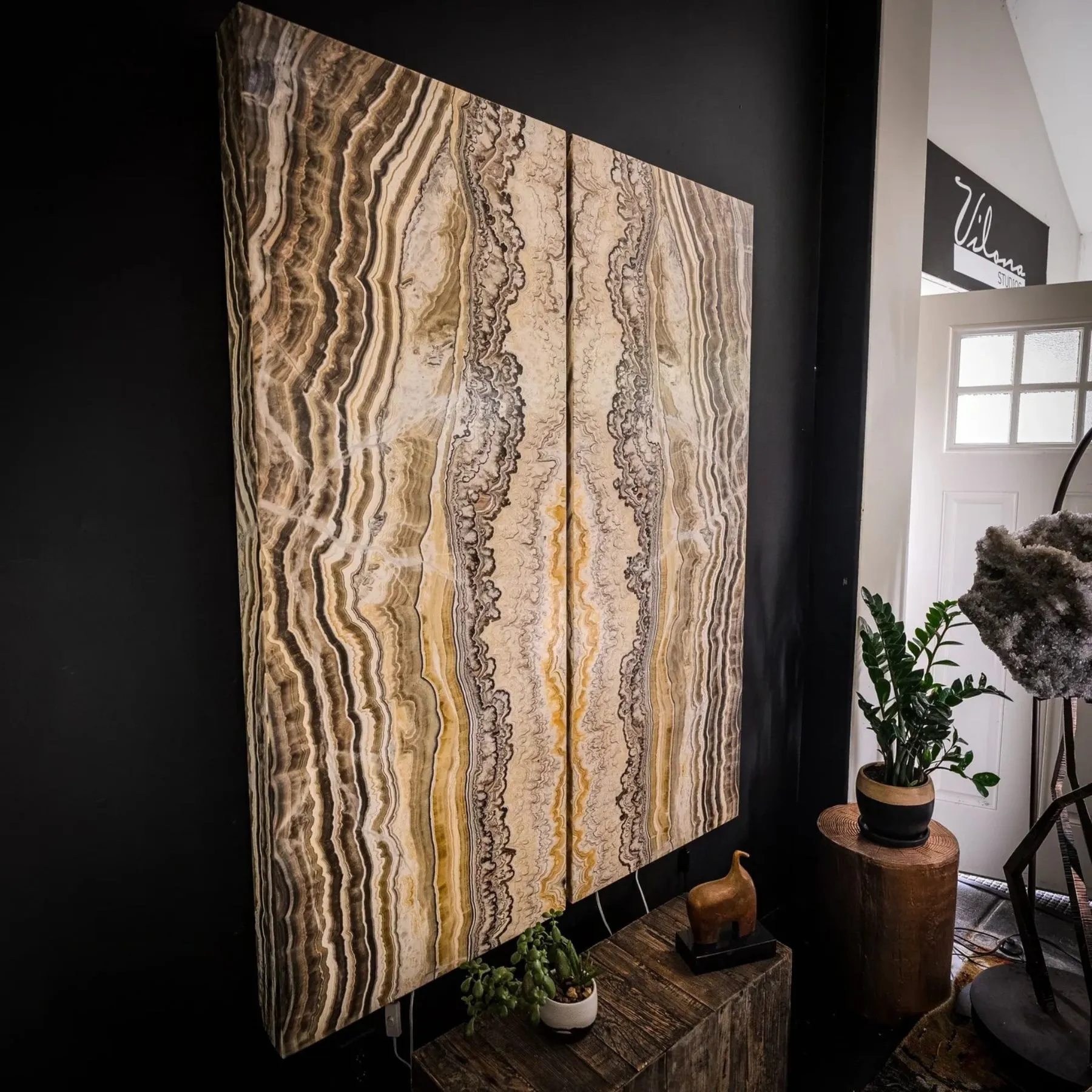 Embrace the glow from our Wall Panel Collection, where each piece is a celebration of nature’s artistry. Sourced from the finest Mexican Onyx stone, every panel is a one-of-a-kind masterpiece, made from the top 5% of the minerals available. Our pieces have naturally occurring patterns that only the earth can create. This collection honors the splendor of crystalline minerals through an exquisite range of wall panels, accent furniture, and sculptural décor—each designed to transform your environment with elegance and serenity.