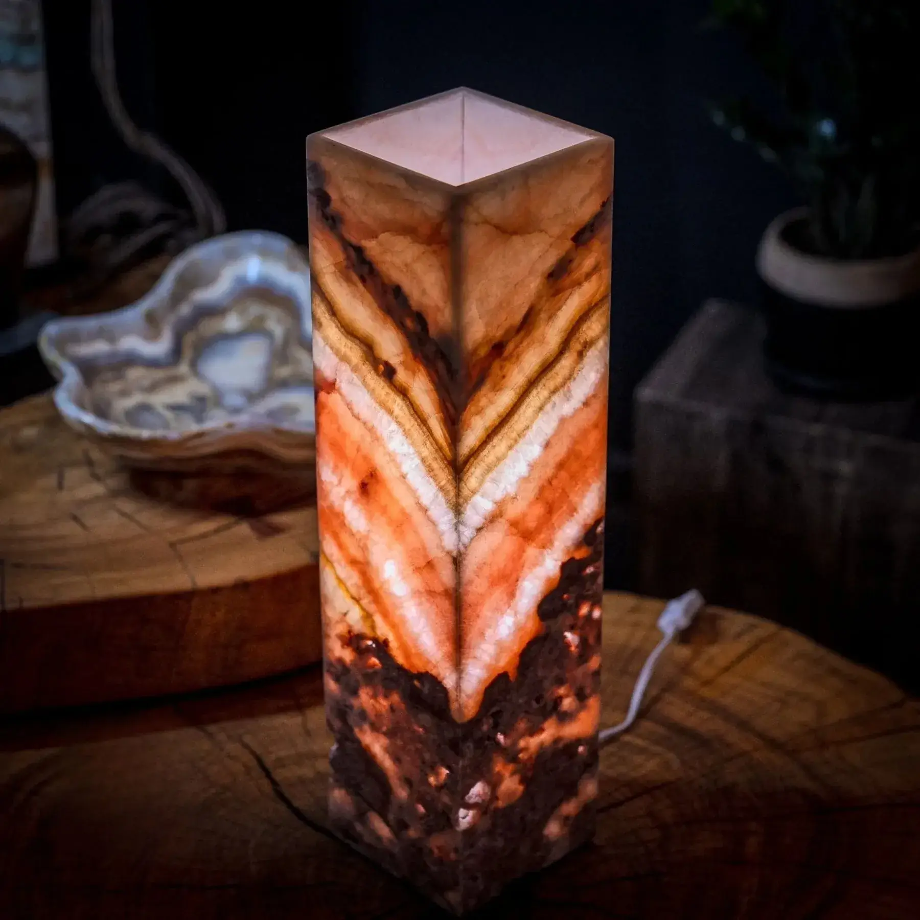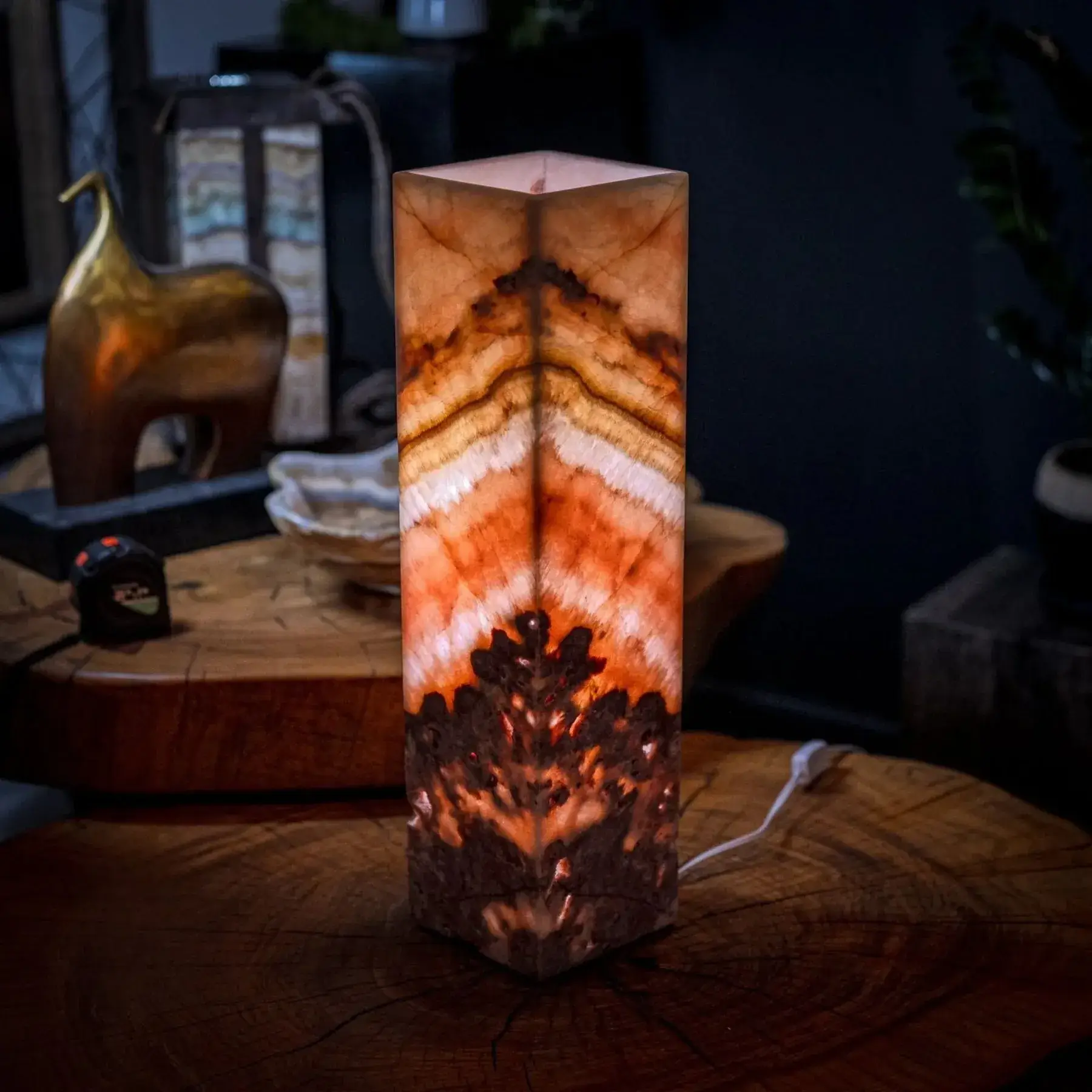 The onyx lamp displayed in this listing is (23.5″ Tall, 6×6″ square)
