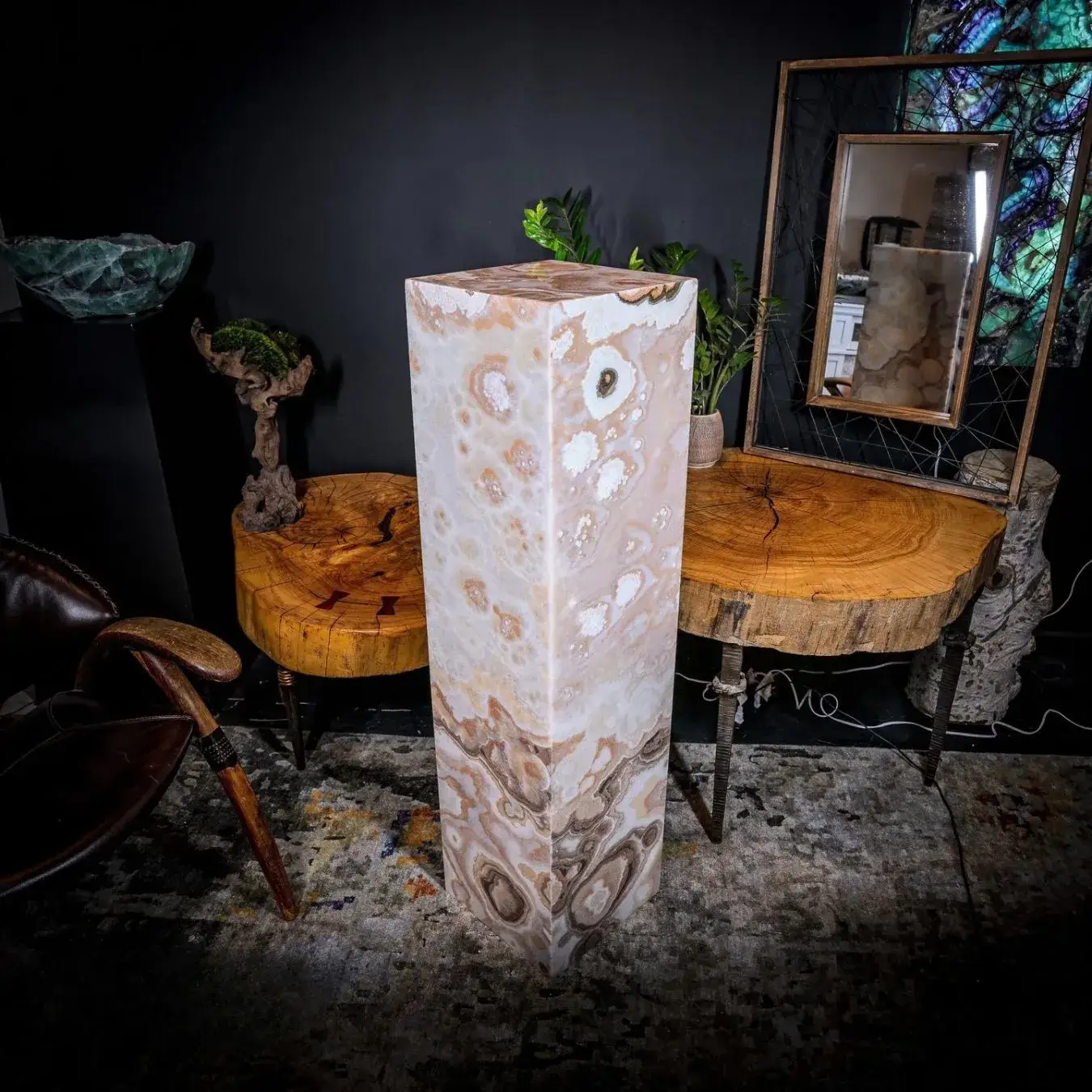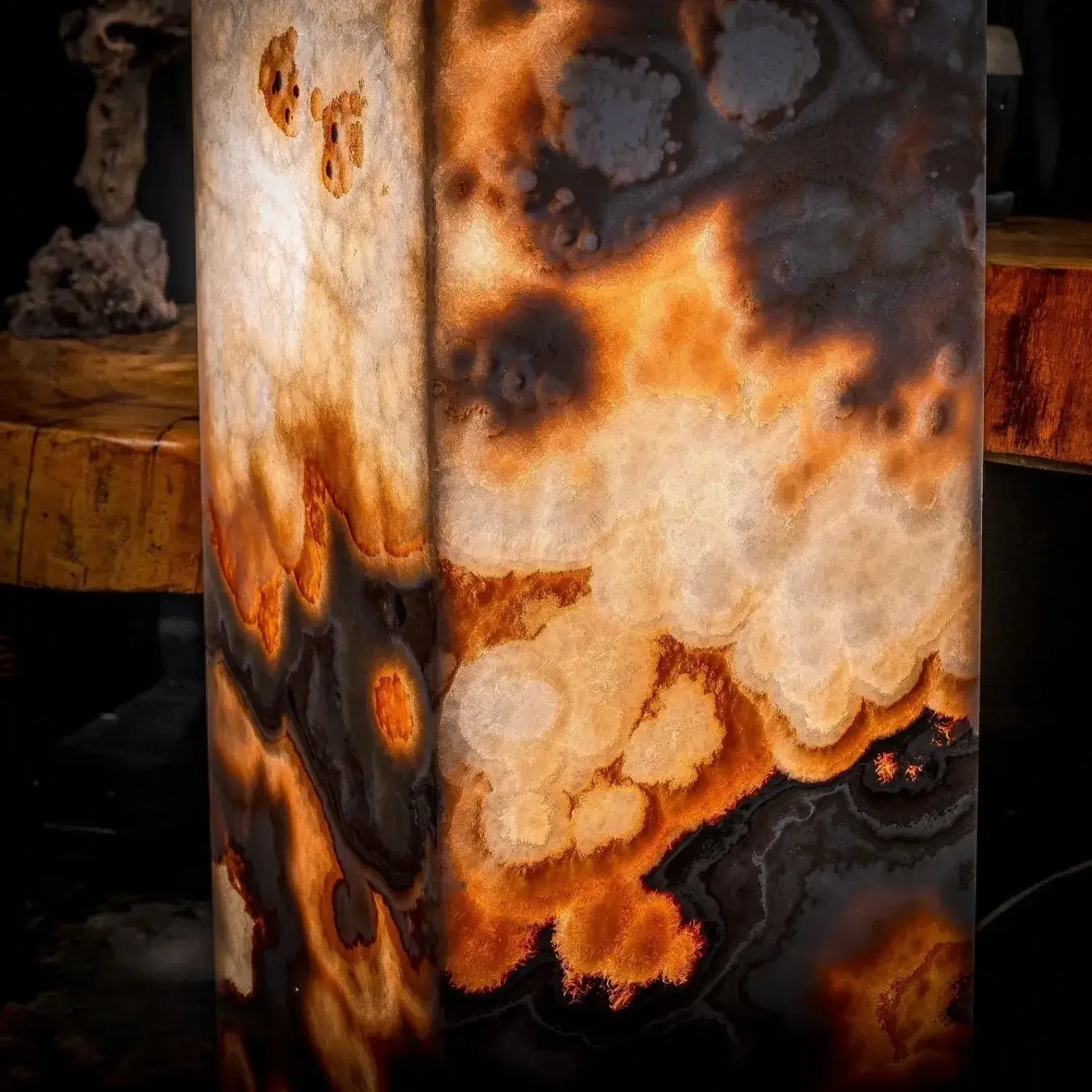 Introducing Sahara Onyx, our latest quarry find! Its stunning blend of tan and multicolor is an absolute delight to behold. We’ve got a variety of lamp styles in this unique shade, but snag them while you can – it’s a small batch, and once they’re gone, they’re gone for good! Keep your eyes peeled for this rare and captivating color of onyx. Trust us, you won’t want to miss it.