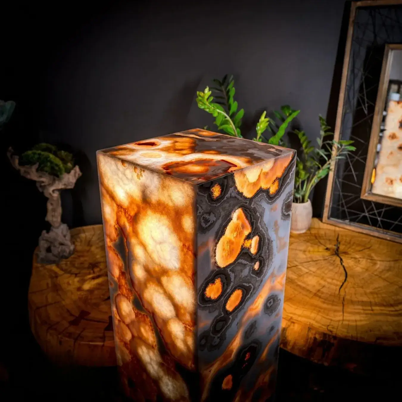Let the soft glow of our lamps create a warm atmosphere in your home. And as for the natural beauty of the onyx stone? It’s sure to bring peace and tranquility into your life. Illuminate your space with the wonders of natures finest pieces.