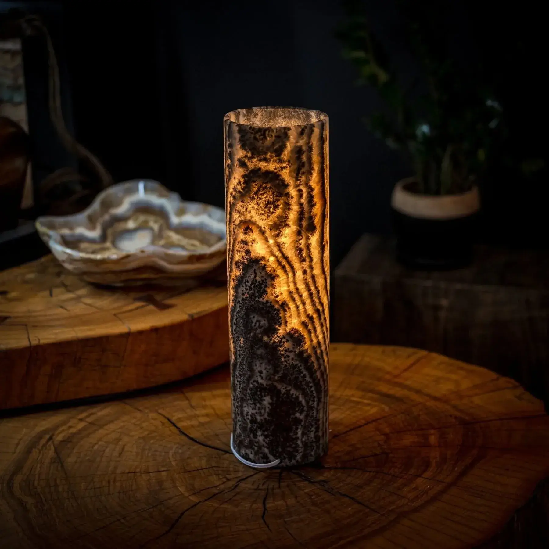 Experience the serene warmth and tranquility of nature right within the confines of your home with our Tangerine Onyx. Each lamp is individually crafted to create a distinct piece of natural art that emanates a soft glow, setting the perfect ambiance for any room.