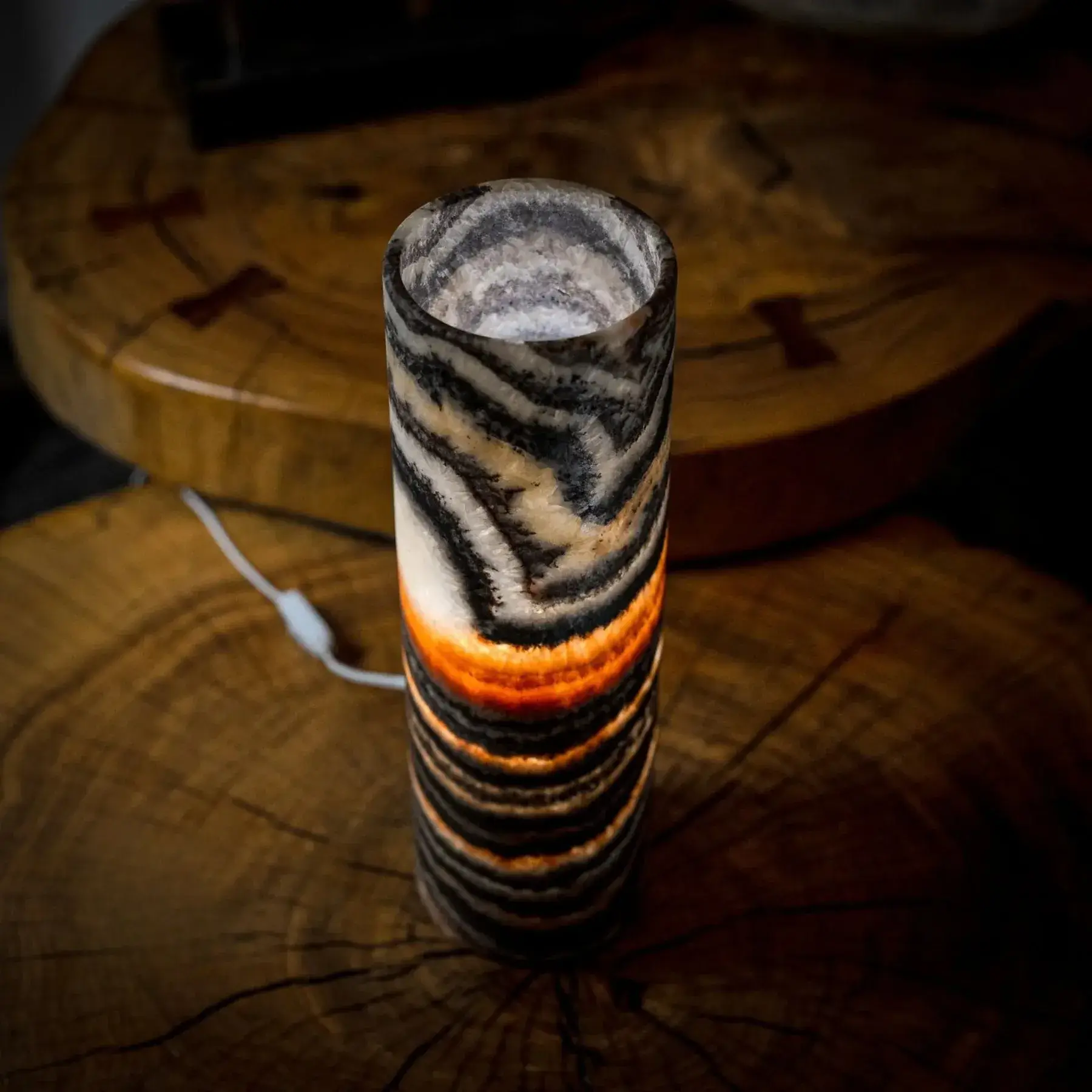 Experience the serene warmth and tranquility of nature right within the confines of your home with our Tangerine Onyx. Each lamp is individually crafted to create a distinct piece of natural art that emanates a soft glow, setting the perfect ambiance for any room.