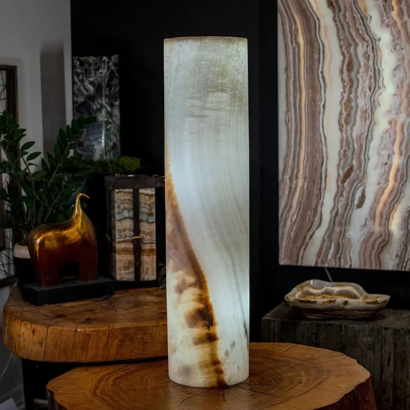 Let the soft glow of our lamps fill your space with warmth and tranquility. The natural beauty of onyx is unmatched—each lamp tells its own story through its intricate patterns and delicate balance of light and stone. Illuminate your home with one of nature’s rarest creations.