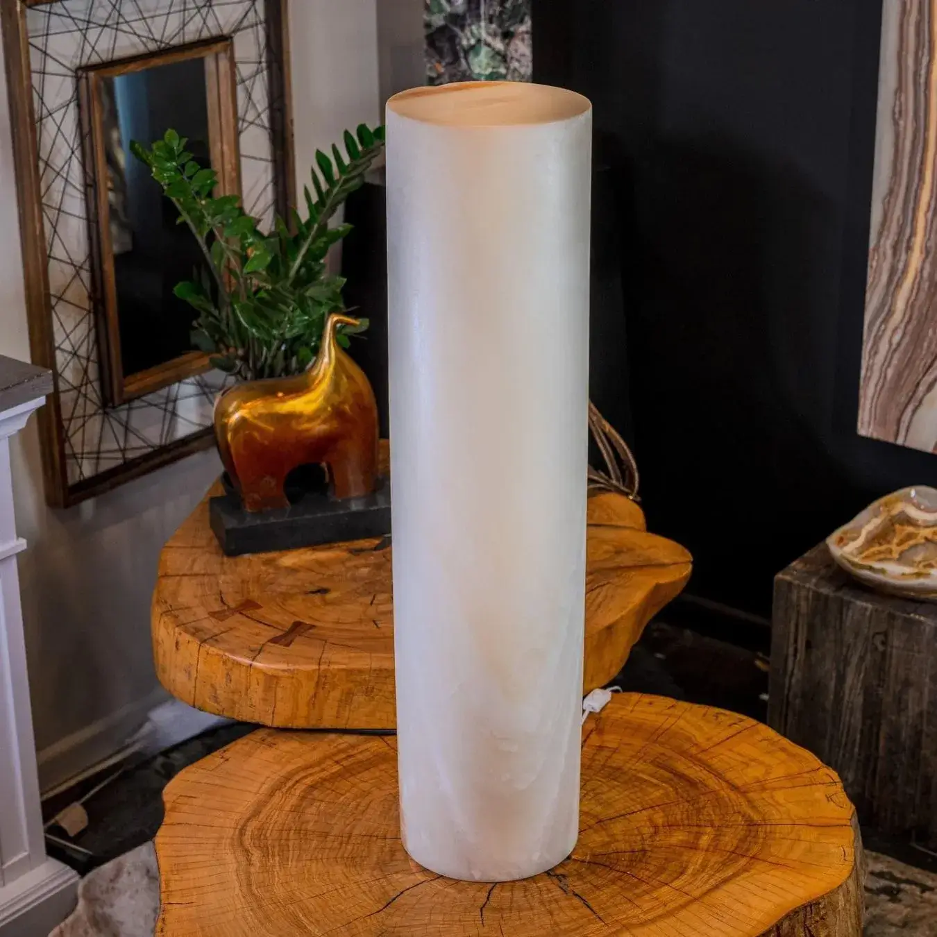 White Ice Onyx Floor Lamp (Cylinder Lamp #1)